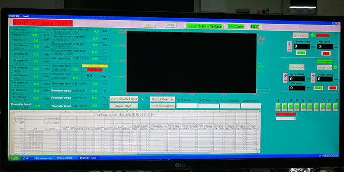 變速箱試驗臺系統可以設置轉速、扭矩、潤滑油溫度的報警值(上限報警)報警方式。采用可編程序控制器控制變速箱自動換擋機構及潤滑油恒溫控制系統的動作。計算機系統負責整個系統的程序控制、數據采集、數據存儲、生成報表、繪制曲線、打印輸出報告。